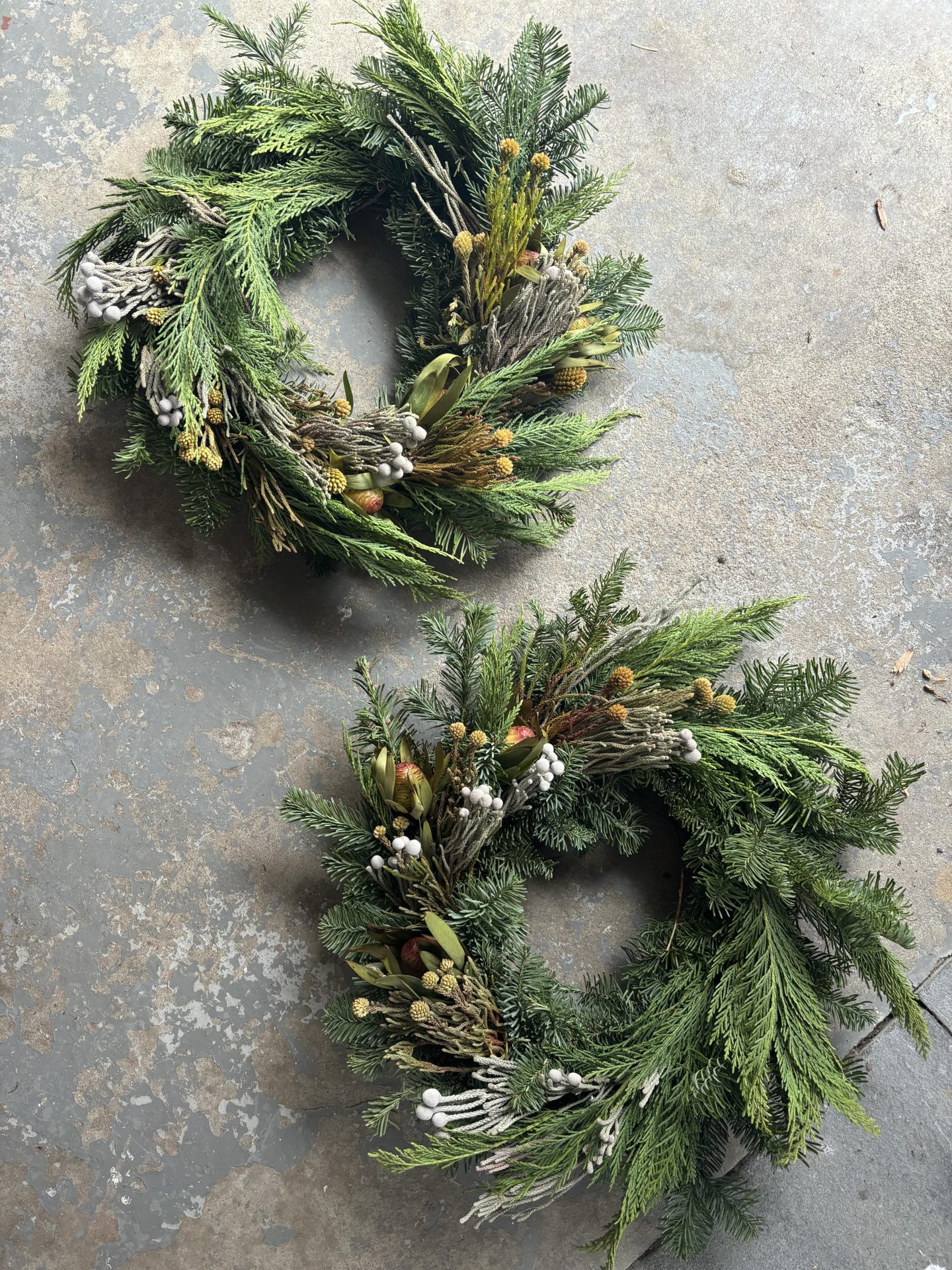 In this workshop, Martha will teach you how to make a winter wreath using a grapevine base and winter greens like cedar, magnolia, and eucalyptus. You’ll learn about floral design techniques and principles to add accents like berries, winter citrus, and ribbon. We’ll go over care tips and ways to reuse the grapevine base to make seasonal wreaths throughout the year. This is a beginner workshop. All materials provided.